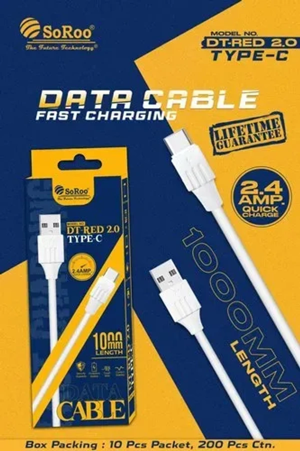 SoRoo Premium Type C Data Cable 2.4A Model-DT-RED 2.0